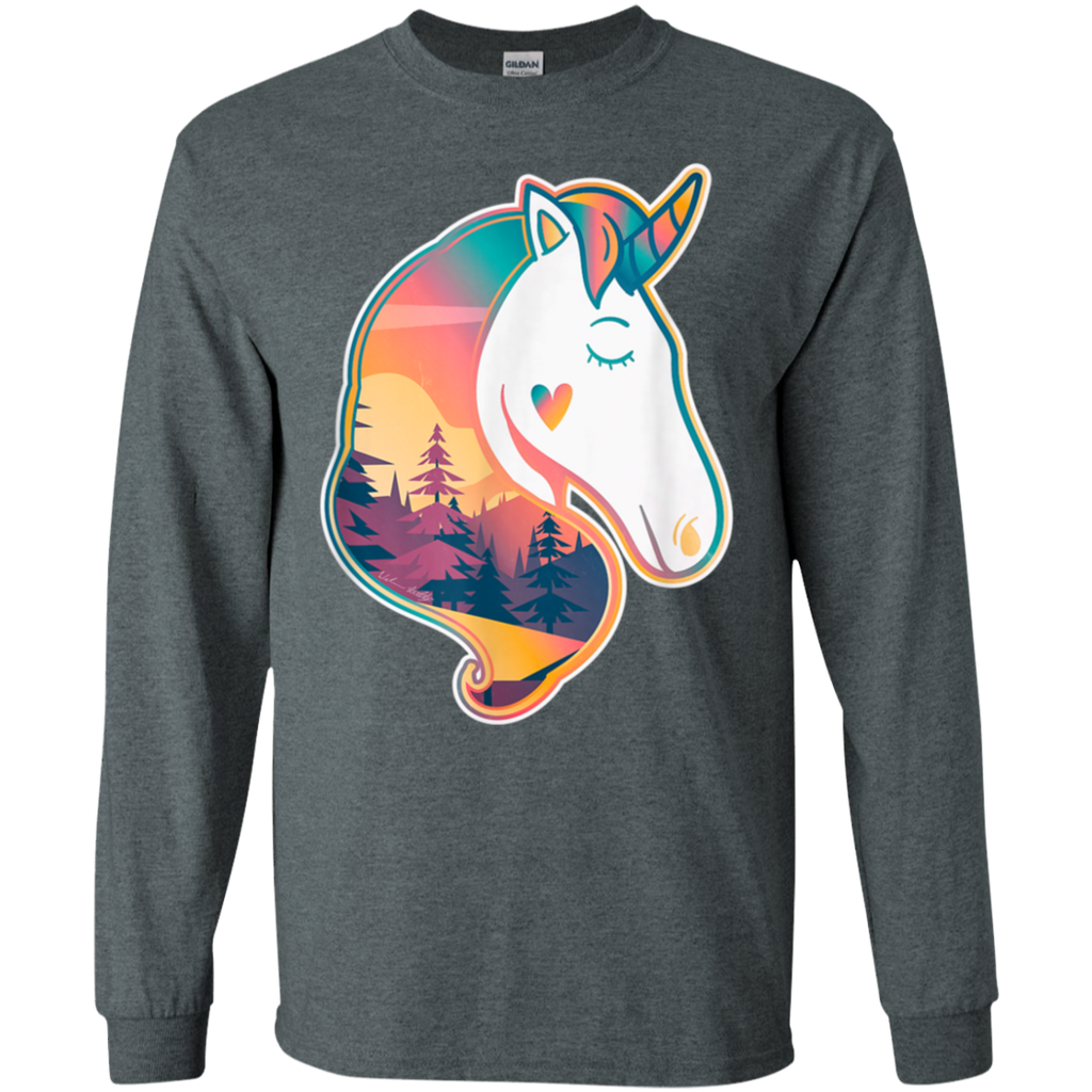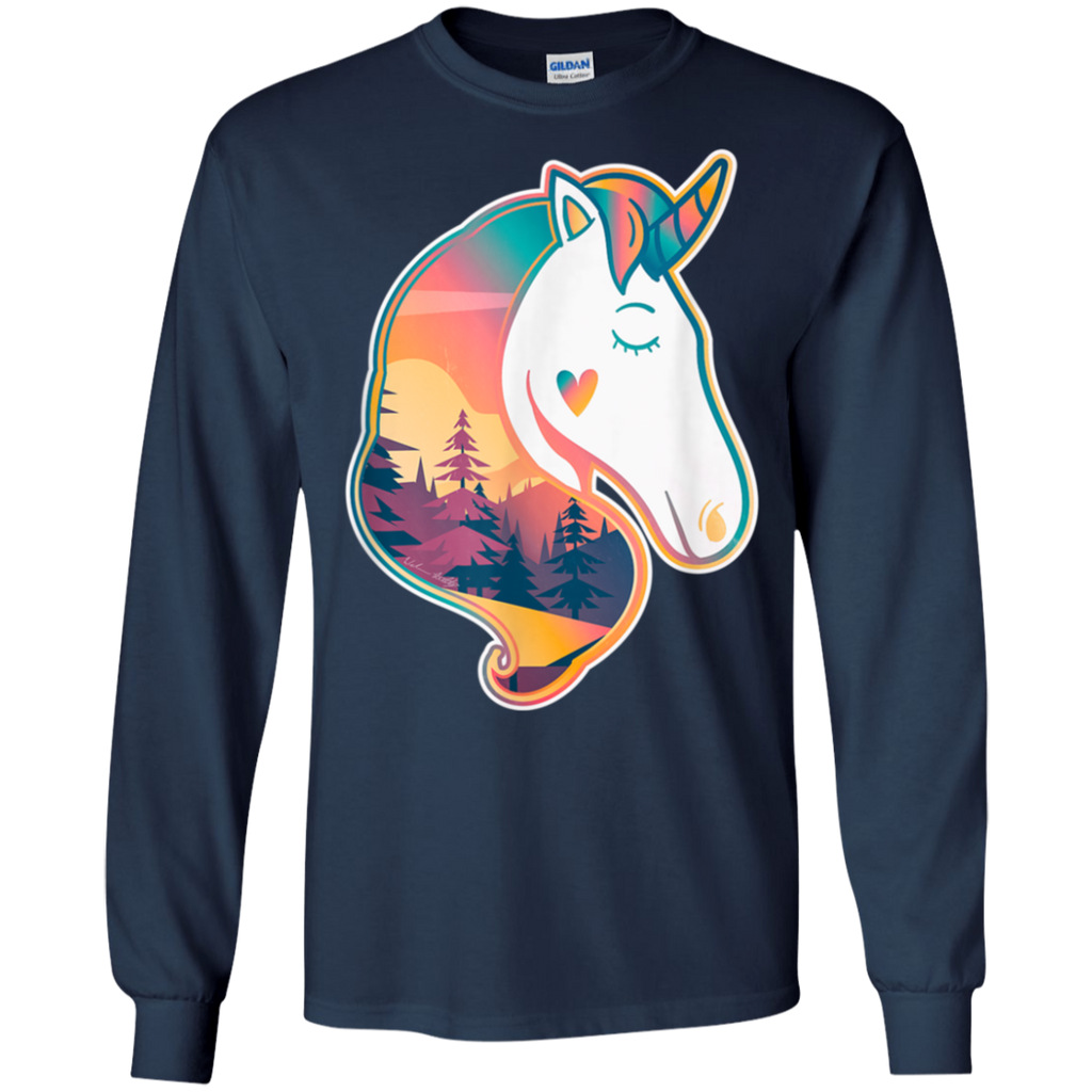 Unicorn Spirit Animal Sunrise Over The Trees Shirt G240 Gildan LS Ultra Cotton T Shirt